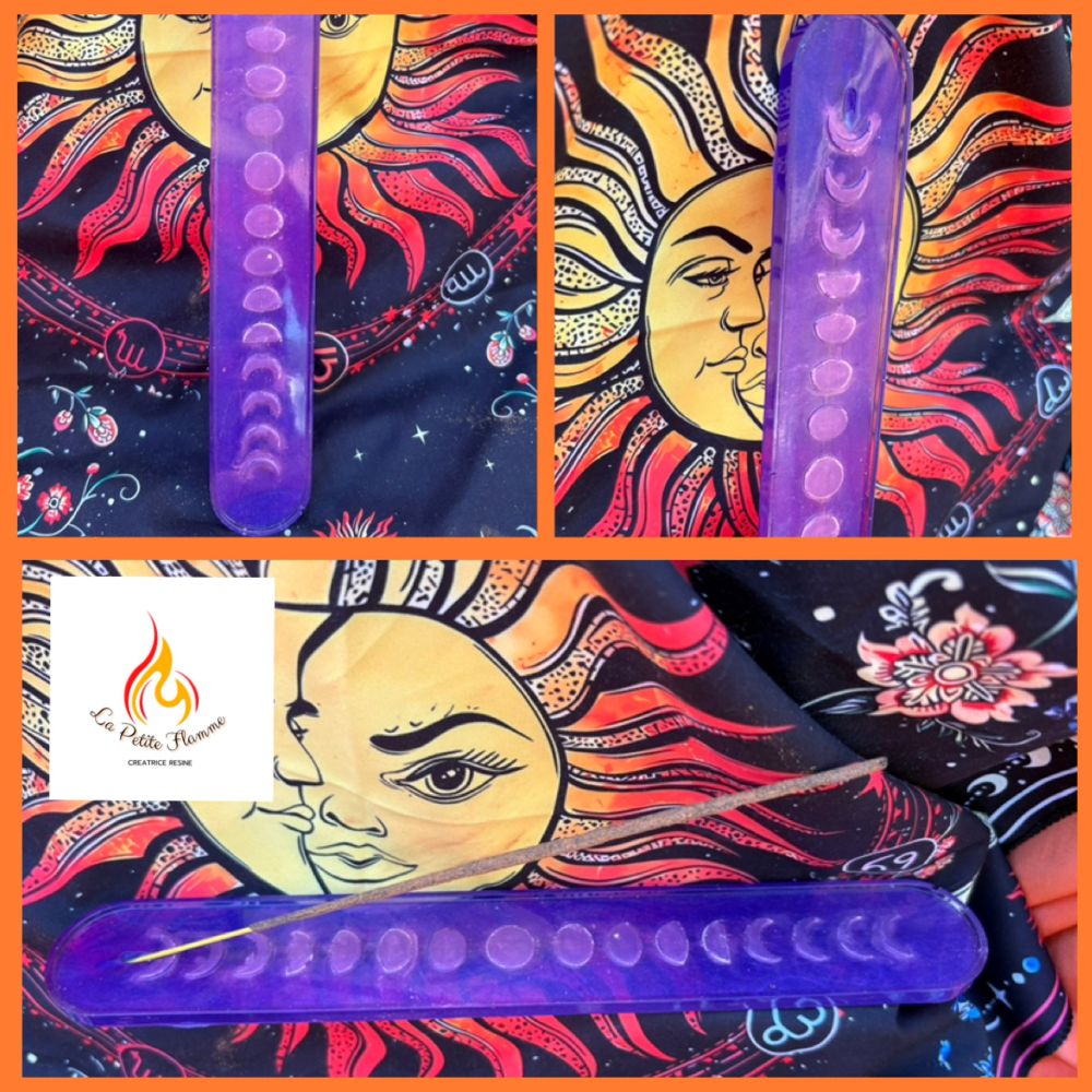 Laissez-vous guider par les phases lunaires avec ce porte encens artisanal en résine violette aux reflets mystiques.